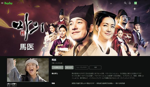 Huluでも「馬医」を見放題で配信しています。